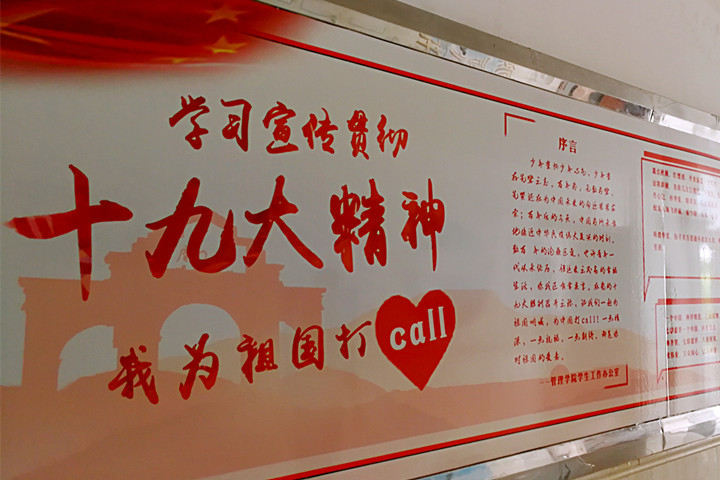 “对祖国的爱,就要勇敢地表达出来。家国情怀,在任何时候都是构成厦大学子人生信条的必然元素。” 在管理学院成枫楼二楼,一幅长达9.5米的宣传海报在开幕会当天亮相。这些是由管理学院同学自主原创、自行设计的“学习宣传贯彻十九大精神•我为祖国打call”的表白语,率先呈现在微信公众平台、i厦大APP上,吸引了众多同学的踊跃投稿,随后又以“线下秀”的形式展现在各个宣传展位上,引人注目。这是管院“五走”系列活动中的“走进网络”。管理学院秉承“全员动员、全身参与、全心投入”的指导方针,以“走进现场、走进讲坛、走进网络、走进课堂、走进操场”为全新路径,全面推动全院师生学习宣传贯彻党的十九大精神。