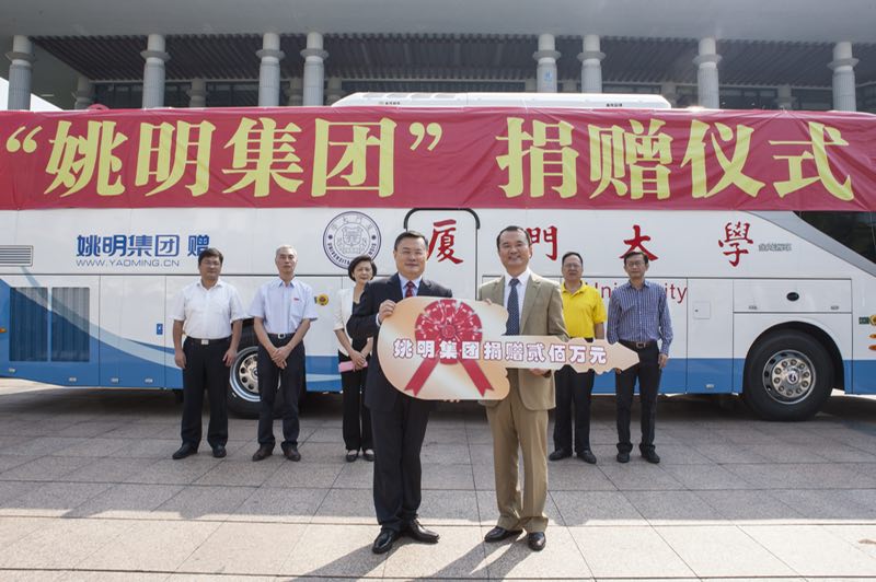 10月28日上午,“姚明集团”向我校捐赠三部总价值人民币200万元的通勤班车。校长张荣代表学校感谢“姚明集团”董事长、我校企管系1989届校友姚明,并接受捐赠。