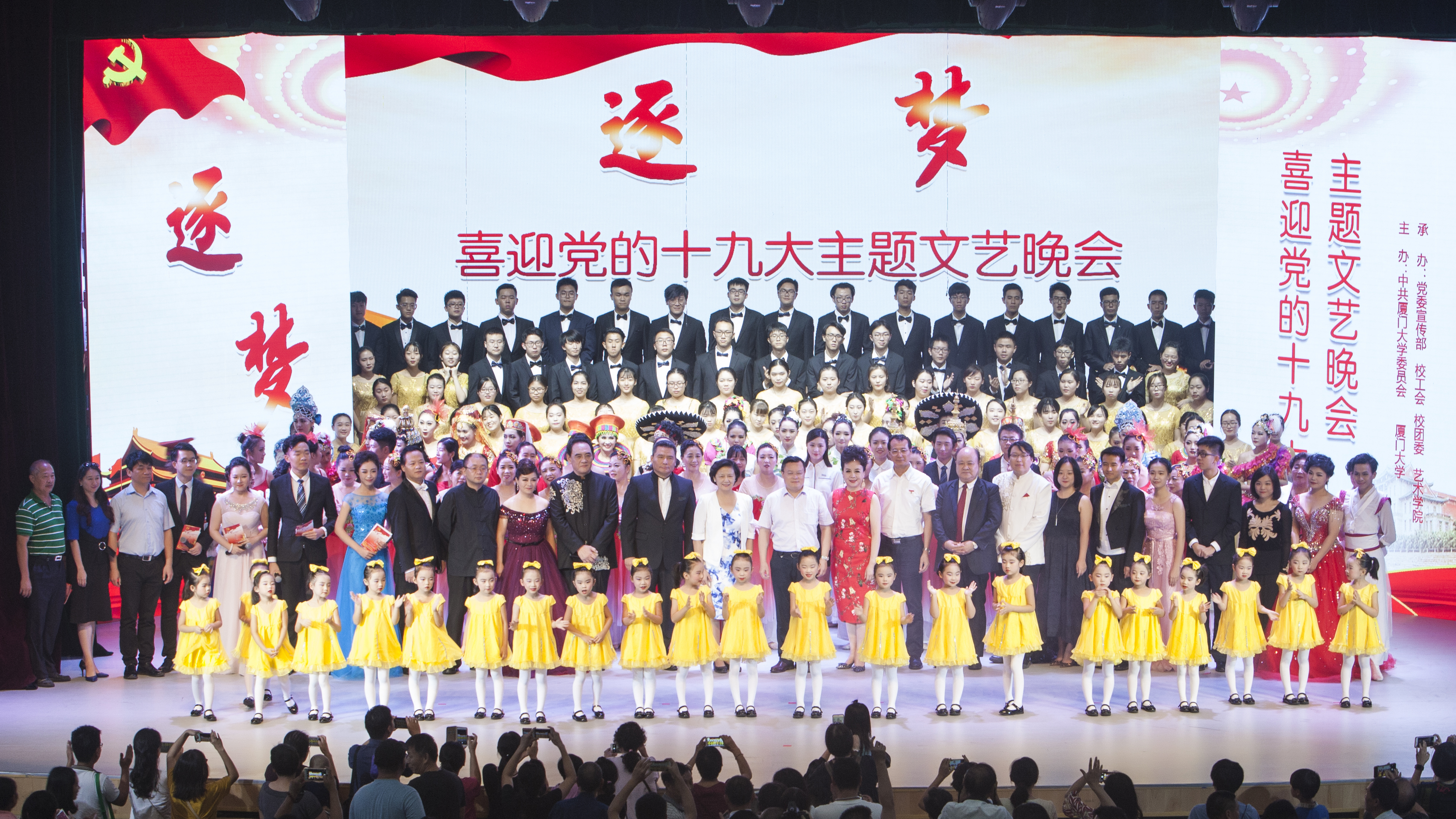为迎接党的十九大胜利召开,10月16日晚,厦门大学喜迎党的十九大主题文艺晚会在建南大会堂隆重举行。此次演出由中共厦门大学委员会、厦门大学主办,党委宣传部、校工会、校团委、艺术学院承办。校长张荣,党委副书记、纪委书记赖虹凯,副校长詹心丽,校长助理赵铁出席活动。