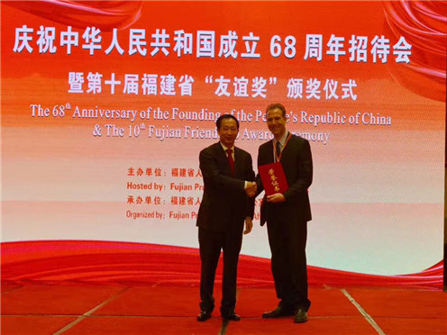 近日,第十届福建省“友谊奖”名单公布,人文学院美籍教授孔青山获此殊荣。9月29日,孔青山教授赴福州出席福建省外事办举办的国庆68周年招待会暨第十届福建省“友谊奖”颁奖仪式并做了代表发言。