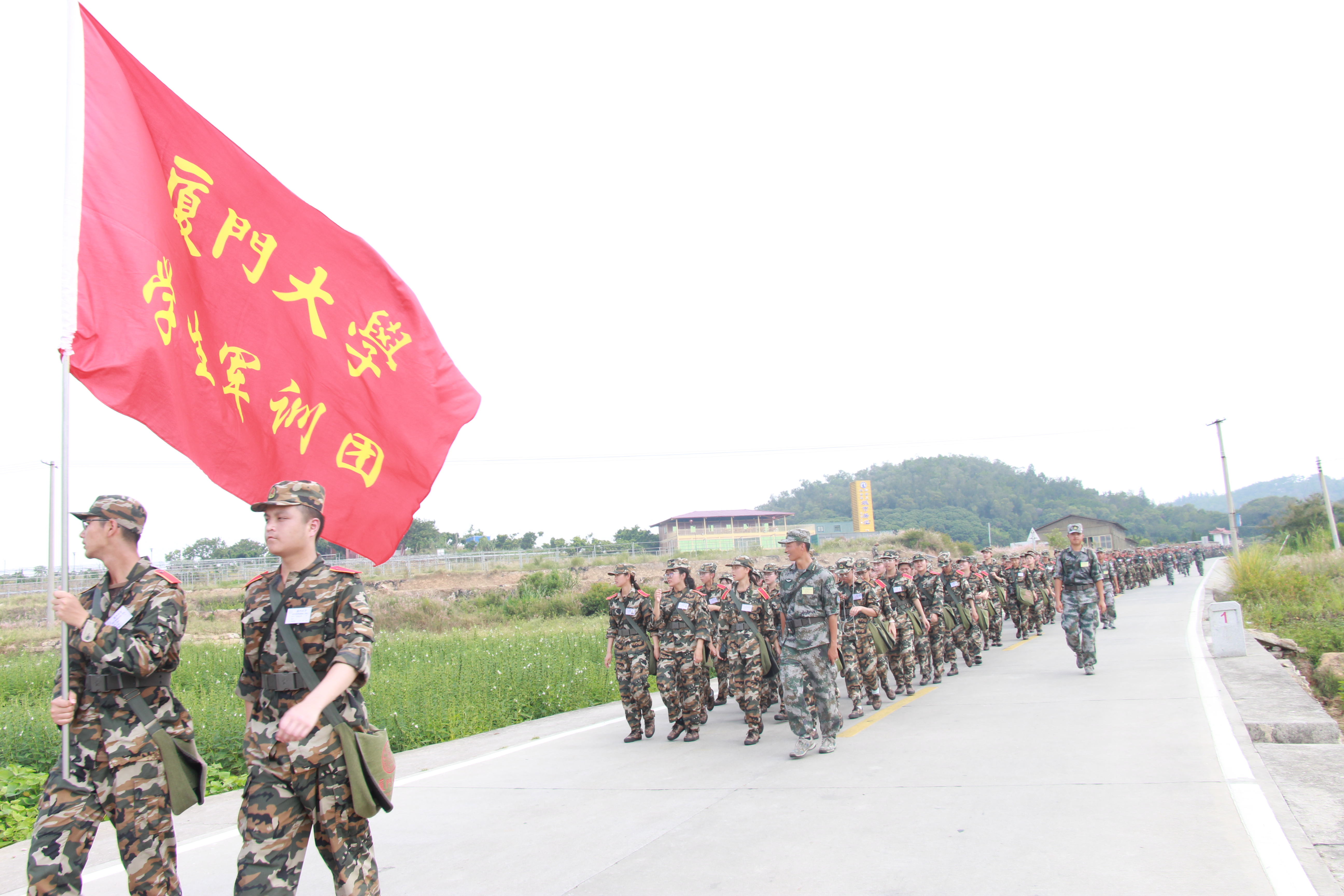 早上7点,新生们从翔安校区曹德旺图书馆集结出发。为保证野外拉练活动的顺利进行,翔安校区保卫办以及当地派出所,在队伍行进的途中进行交通疏导,保证队伍沿途的交通安全。校医院、餐厅以及后勤各部门也为此次拉练活动提供了强有力的支持和保障。