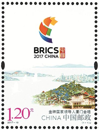 今年8月,中国邮政发行了《金砖国家领导人厦门会晤》纪念邮票。该套邮票以金砖国家领导人厦门会晤标识为主要设计元素,结合了鼓浪屿、厦门大学、集美学村等最具厦门特点的风光和人文标志。为了助力金砖,助力厦门国际投资贸易洽谈会,这些标志再次被设计为纪念封。此次发行的“国家名片”系列纪念封一组两枚,一枚为《国家名片·南方之强———邮票上的厦门大学》纪念封;另一枚为《国家名片·世界遗产———邮票上的鼓浪屿》纪念封。