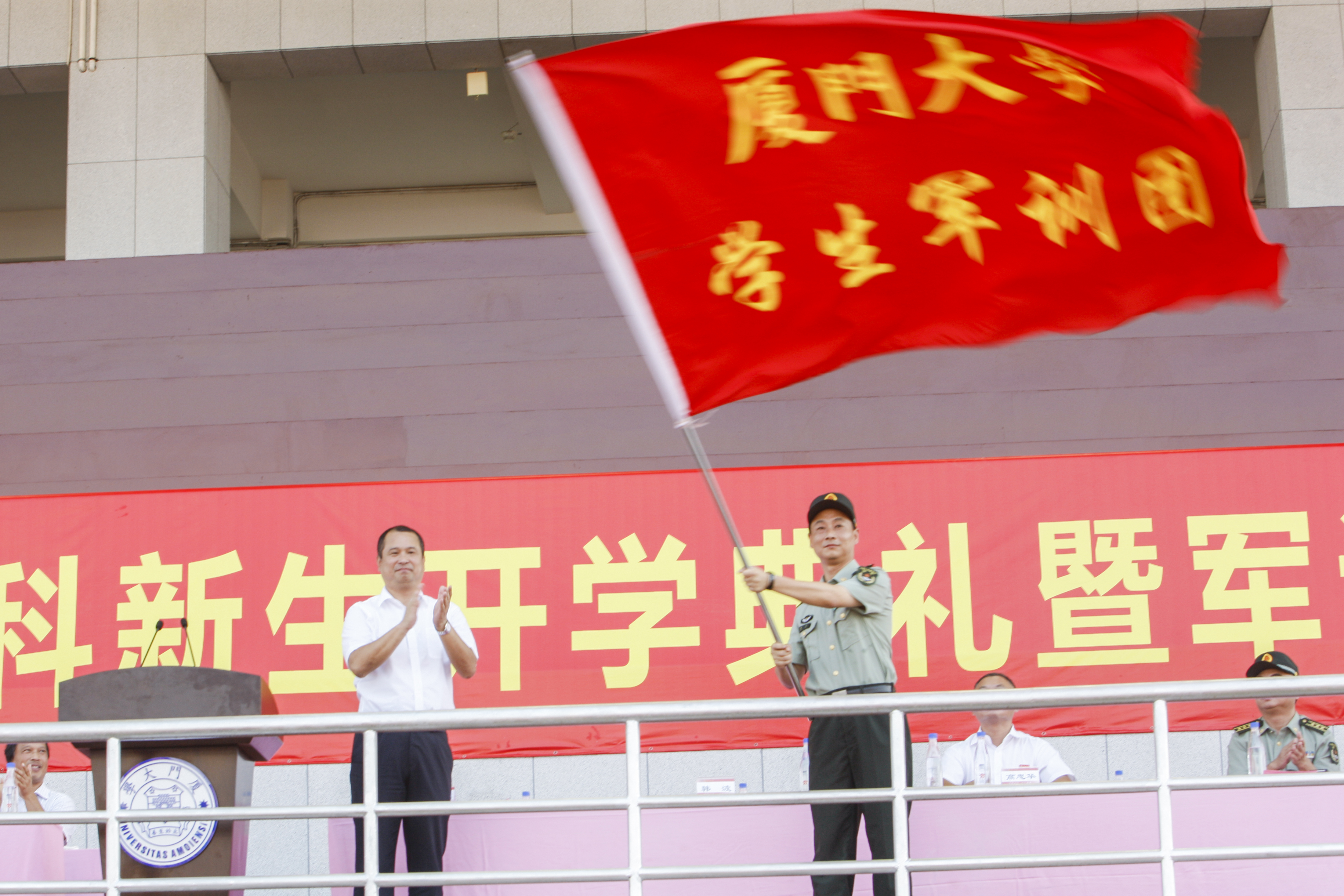 9月15日上午,2017级本科生新生军训动员大会在翔安校区一期田径场隆重举行,为期15天的2017级学生军训正式拉开序幕。校党委副书记、学生军训工作领导小组组长林东伟,承训部队全体官兵,军训工作领导小组成员,学校有关部处负责人,各学院分管教学工作的副院长,分管学生工作的副书记,军训团教导员、指导员和全体参训同学等参加动员大会。校长助理、学生军训工作领导小组常务副组长陈光主持动员大会。