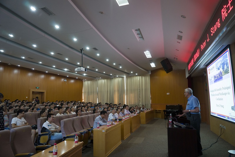 7月23日下午,南强学术讲座(第836讲)在化学报告厅举行。《美国化学会志》主编、美国犹他大学的Peter J. Stang教授应化学化工学院和能源材料化学协同创新中心邀请为我校师生带来一场题为《Abiological self-assembly: Formation of metallacylces and metallacages via coordination》的精彩报告。化学化工学院院长江云宝教授主持了本场南强讲座,中科院院士田中群教授向Stang教授颁发了南强讲座纪念牌并合影留念。