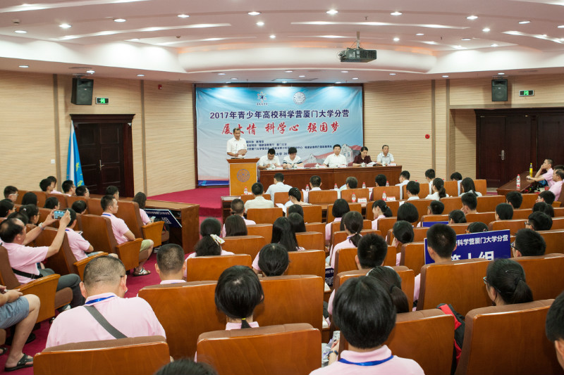 7月14日,由中国科协、教育部主办,中国科学院支持,福建省科协、福建省教育厅和厦门大学承办的2017年青少年高校科学营厦门大学分营开营。福建省科学技术协会党组成员、副主席林学理,厦门大学党委副书记林东伟等领导和嘉宾出席了开营仪式。来自福建、湖南、江苏、浙江、云南、安徽、河南以及江西的近200名优秀在校高中生和带队教师参加了开营仪式。仪式由厦门大学团委书记陈怀锋主持。
