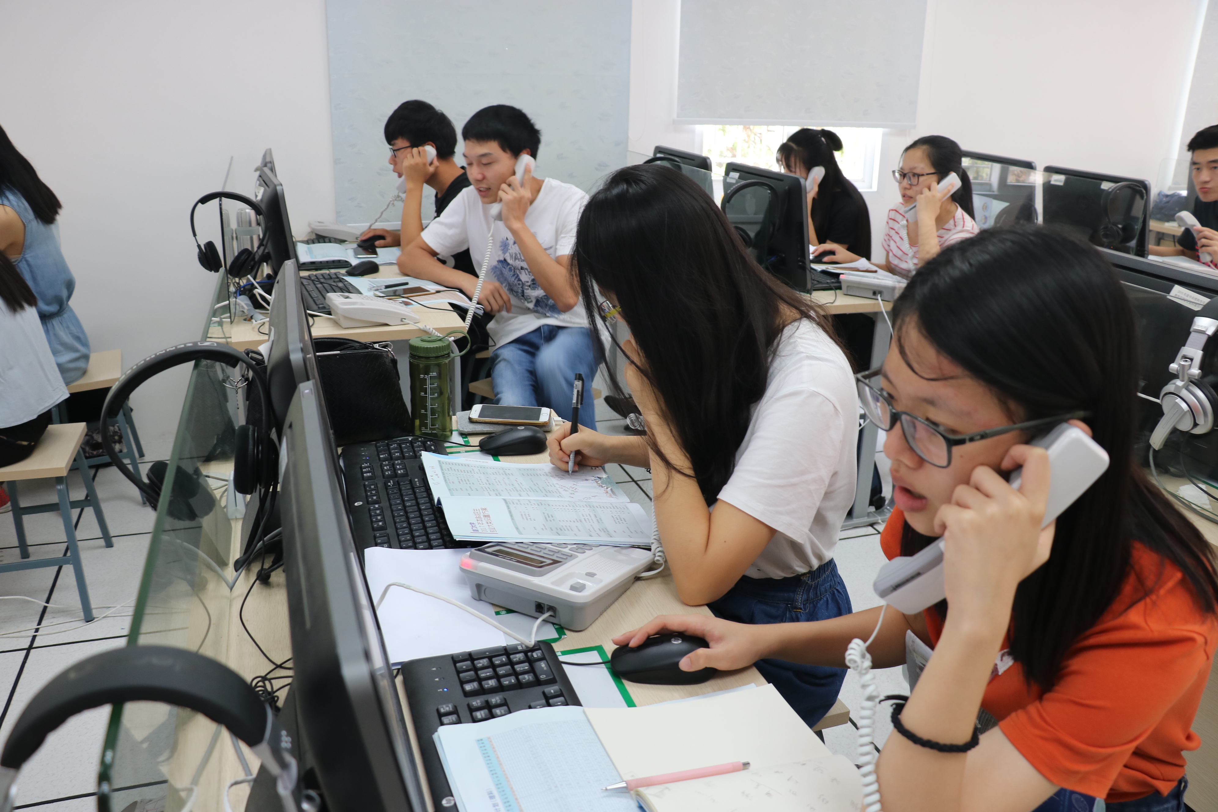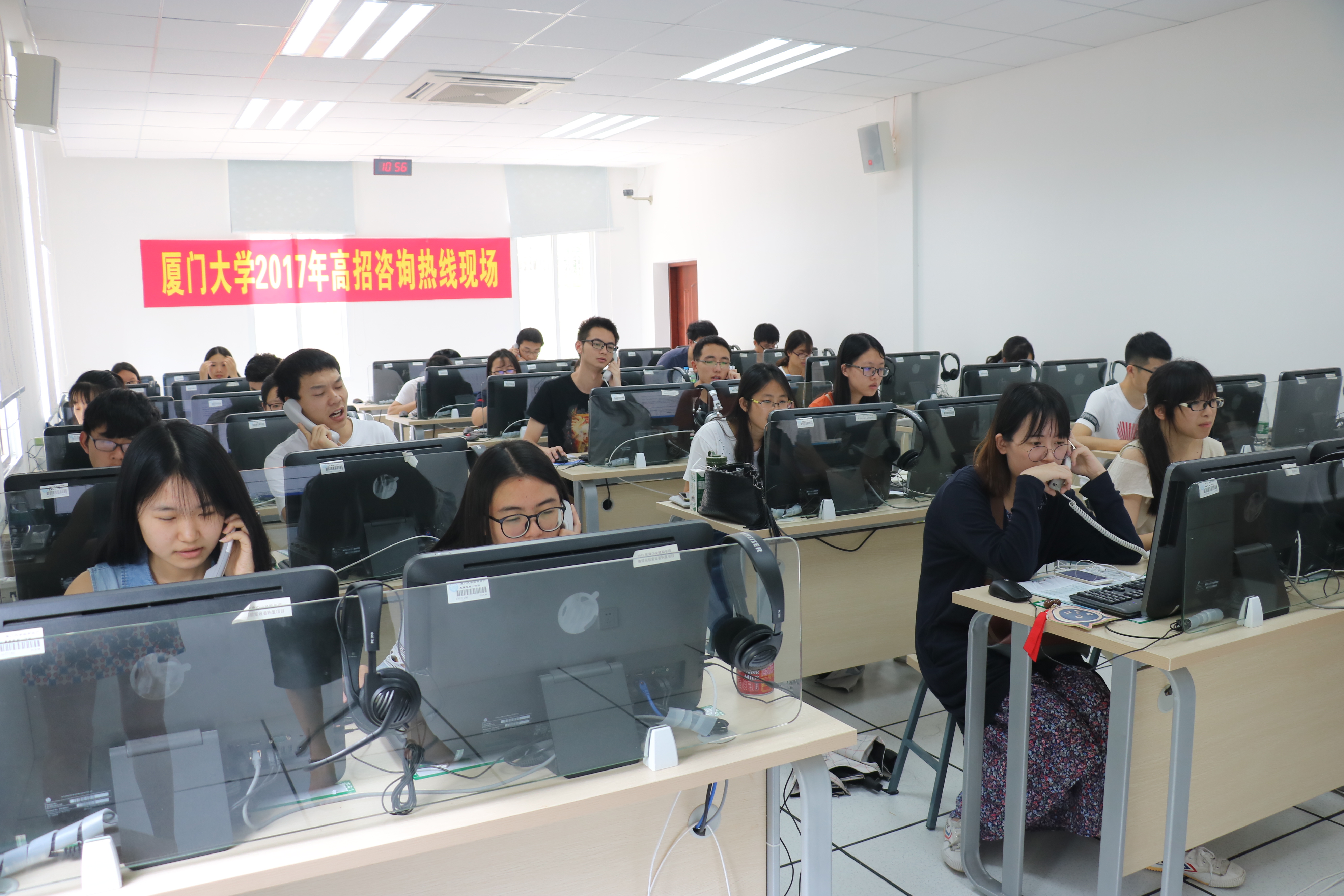 “您好,厦大招生办……”6月27日上午,学校招生咨询热线平台电话此起彼伏。而这也是招生志愿者——2014级本科生曾禹当天接到的第56个电话。 “高考成绩公布之后的这几天,每条热线每天都需要接受上百位考生和家长的咨询电话,特别是上午的9点到12点,电话完全不间断,刚挂断立马又响起来。虽然累,但短短几分钟就能解决他们的疑惑也觉得挺开心的。”曾禹笑着说。一台电脑,一个电话,一支笔,一本报考指南,在这样简洁有序的工作台上,曾禹忙得不亦乐乎。