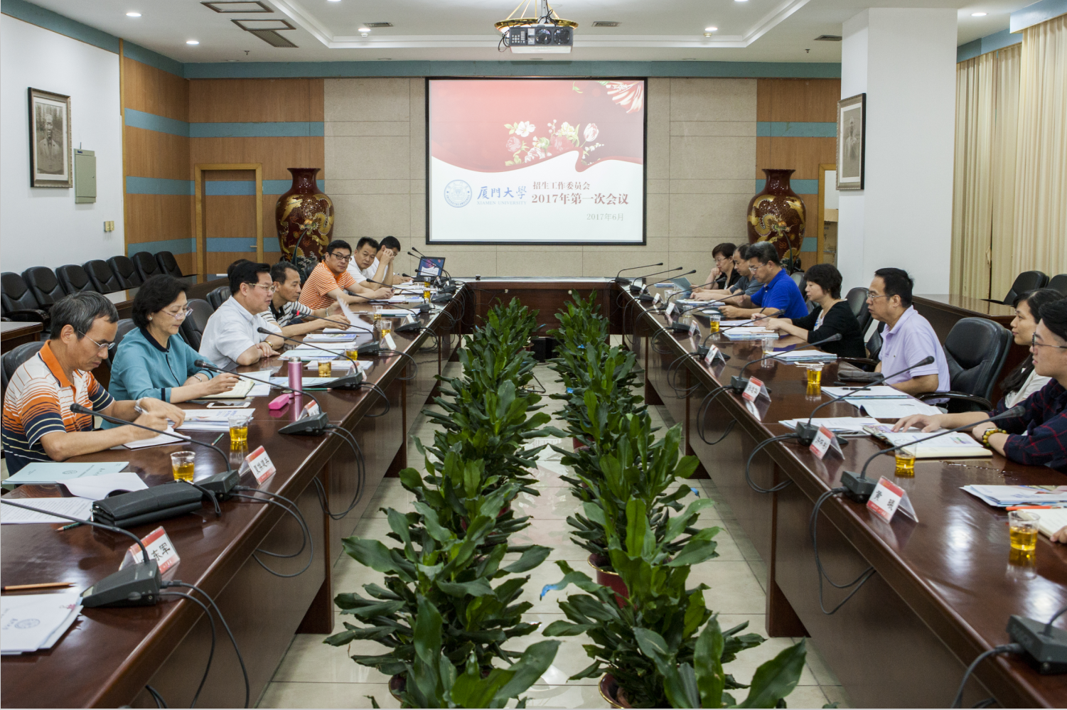 6月20日下午,我校2017年第一次招生委员会在颂恩楼215会议室召开,校长、校招生委员会主任朱崇实主持并讲话,校党委副书记、招生委员会副主任赖虹凯,副校长、招生委员会副主任邬大光,副校长、校招生委员会副主任詹心丽,以及校监察处、学生工作部、教务处、研究生院、招生办公室、考试中心负责人及教师代表、学生代表和校友代表等招生委员会委员与会。