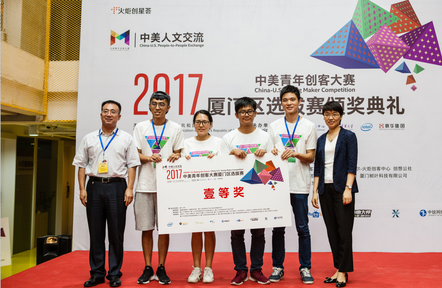 经专家评审,大赛最终决出一等奖1项,二等奖2项,三等奖3项。由我校信息学院研究生王荣鑫、厦大海西通信工程技术中心工程师叶美霞、台湾成功大学研究生林忠祯、陈昱嘉联合组队完成的“溺境求援”获得一等奖,同时斩获唯一一项“英特尔技术创新奖”。获奖的6支队伍将被选送代表厦门赛区参加今年8月在北京举行的2017中美青年创客大赛总决赛。