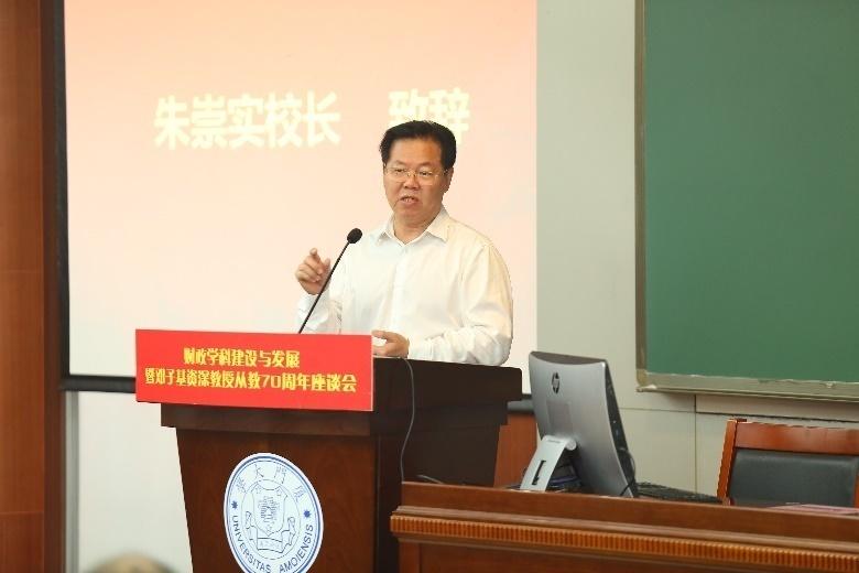 座谈会由我校经济学院党委书记雷根强主持,朱崇实校长、洪永淼院长先后致辞。