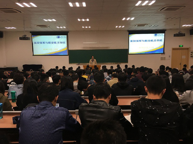 为了引导学生党员模范践行“航空报国”精神,航空航天学院还设立“航空报国”系列党课,邀请在航空航天技术领域有突出贡献和重大影响的榜样和楷模为学生党员讲党课。党课内容覆盖行业最新前沿、奋斗历史、楷模事迹等,以空天领域好故事、行业楷模人格力量等进一步增强学生党员的责任感与使命感。3月26日,学院党委委员、常务副院长尤延铖以“富国强军与航空航天学院”为题开讲首场党课。他从国家周边安全形势谈到军队国防科技建设,并以生动的形式和丰富的内容为学生党员展示了航空航天技术的前沿发展趋势。以此为基础的学院学科特色介绍,则更加贴近同学们的学习生活,带领党员同学们共同感受和体会“航空报国”的现阶段内涵。