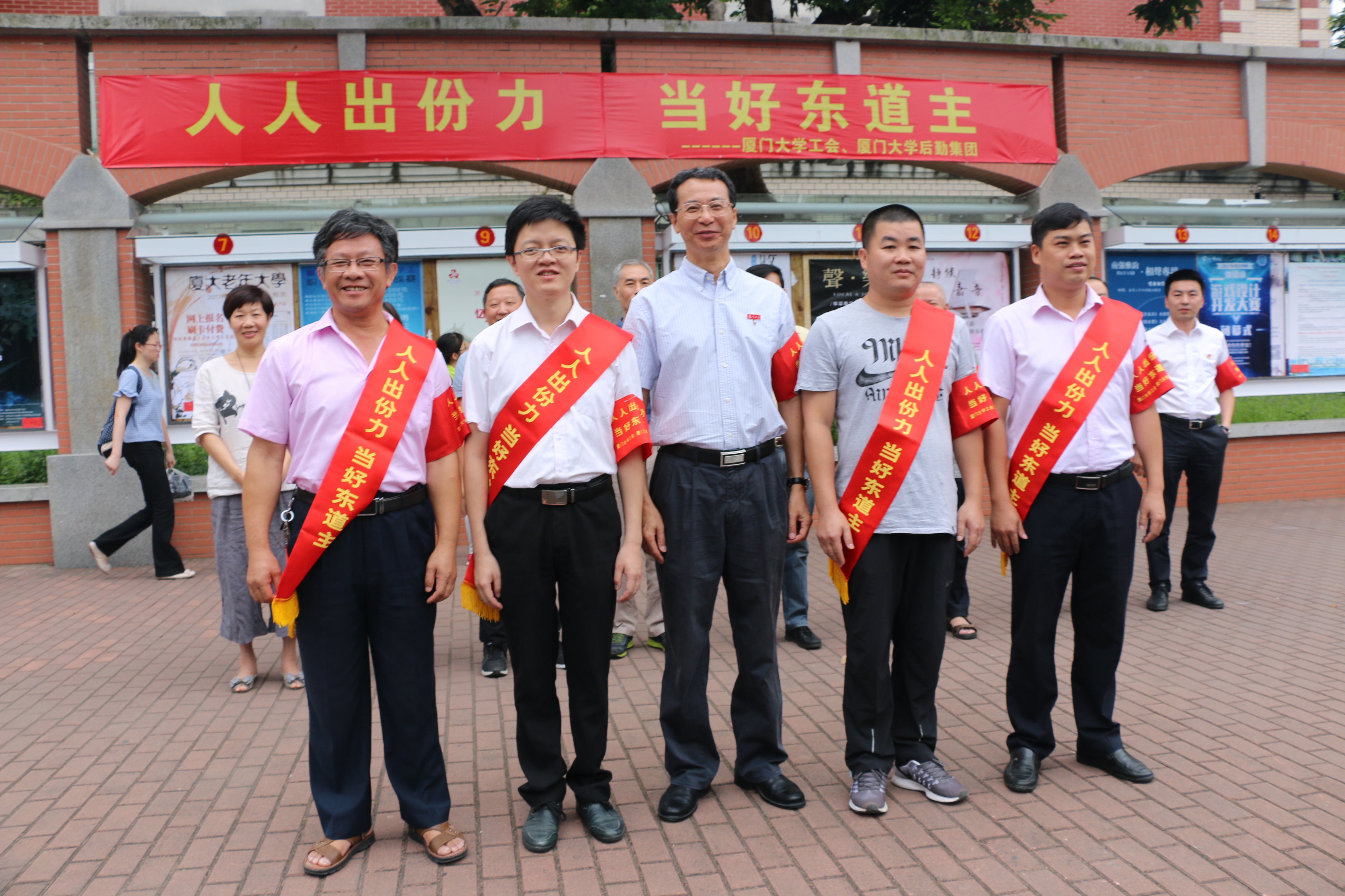 宋毅在致辞指出,此次“人人出份力,当好东道主”暨“美化环境,安全保障,文明礼仪,优质服务”系列活动,是学校响应和落实市政府、市工会提出的“厦门会晤没有旁观者,厦门职工都是东道主”和“环境提升好、服务保障好、活动组织好、安全保卫好”的号召和举措,校文明办、校工会等7个单位也向全校师生发出了“人人出份力,当好东道主”的倡议,充分展现了厦大人的责任和担当,后勤集团党政对此高度重视,希望大家把系列活动开展好,撸起袖子加油干,为“金砖会晤”的成功举办作贡献。