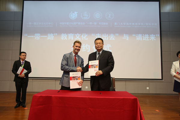 郑通涛在会上宣布设立上述5个“一带一路”相关文化建设项目,介绍各项目的具体任务与目标,并与合作方签署了合作协议。