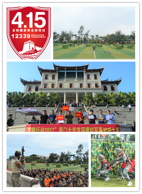 4月16日,由厦门大学人民武装部主办,军鹰协会承办,中国人民解放军驻厦门大学后备军官选拔培训工作办公室协办的“军鹰行动•2017”首届模拟军事对抗大赛在思明校区上弦场拉开序幕。活动引入真人野战激光枪战设备,是当前国内唯一合法并可普及的军事对抗。