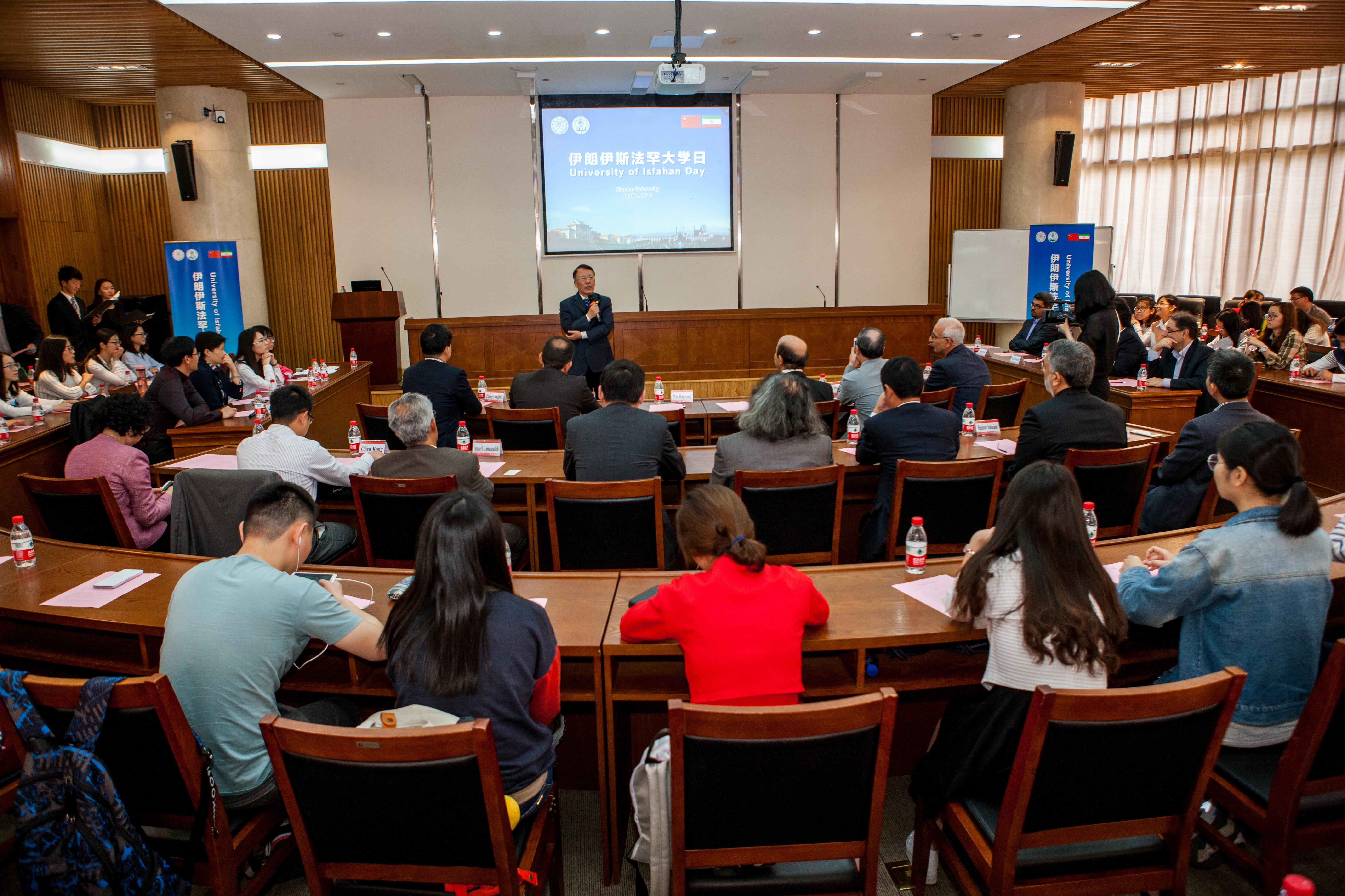 4月7日,伊朗“伊斯法罕大学日”在科学艺术中心拉开帷幕。伊斯法罕大学校长特别代表Seyed Komail Tayebi,伊斯法罕省文化遗产、手工业及旅游局局长Fereidoun Allahyari,我校副校长邬大光、校长助理谭绍滨,两校相关院系领导、教授、学生代表出席上午举行的开幕式。