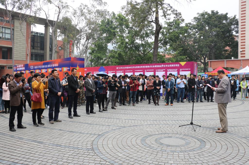 校党委副书记林东伟在开幕式上致辞。他说,重视对学生创新创业能力的培养,一直是学校的优良传统,近年来,学校把学生创新创业教育作为学校综合改革的突破口,不断深化创新创业教育改革,经过这些年的努力,改革成效突出,引领示范作用显著,学生创新创业能力持续提升,人才培养水平不断提高。这次展览,是过去一年我校本科生创新创业成果的集中展示,也是给即将到来的96周年校庆的一份献礼。展览展示的不仅是同学们的创新创业成果,也是学校创新创业教育改革成果,是展示会,更是交流会,希望同学们以此为起点,相互交流,相互切磋,在创新创业的道路上走出自己的精彩,取得更多丰硕的成果。