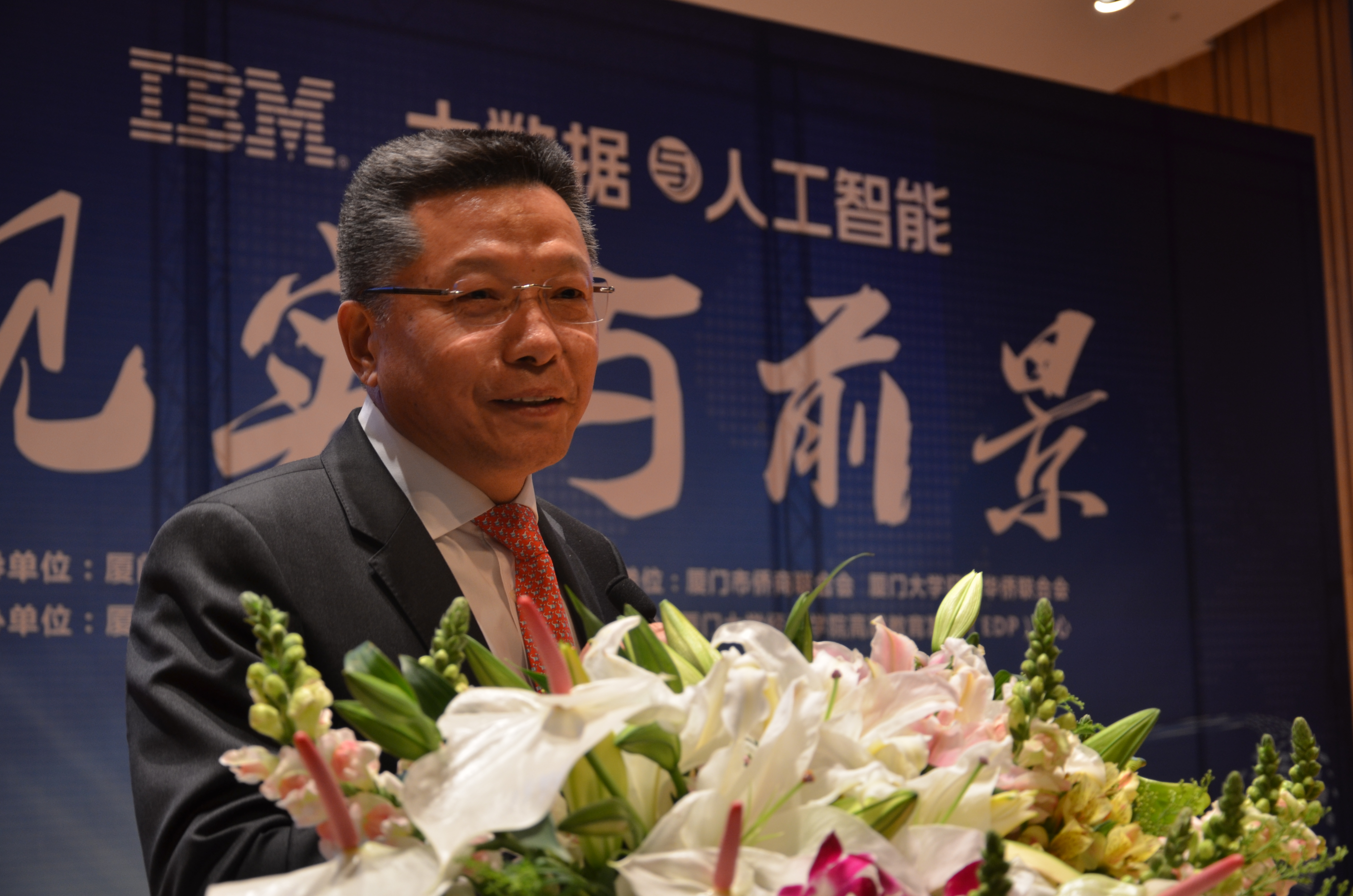 3月21日下午,IBM大中华区董事长陈黎明做客我校南强学术讲座,做《大数据与人工智能:现实与前景》演讲。本次讲座也是厦门市侨商联合会成立5周年、我校96周年校庆活动之一。校党委书记张彦在演讲开始前会见了陈黎明。福建省侨联副主席、厦门市侨联主席王德贤为讲座致辞。我校校长助理滕伯刚代表学校向陈黎明颁发了南强学术讲座纪念牌。厦门市委统战部副部长蔡林娜,省侨联副主席、我校侨联主席程璇,新加坡驻厦门领事馆总领事池兆森等出席。