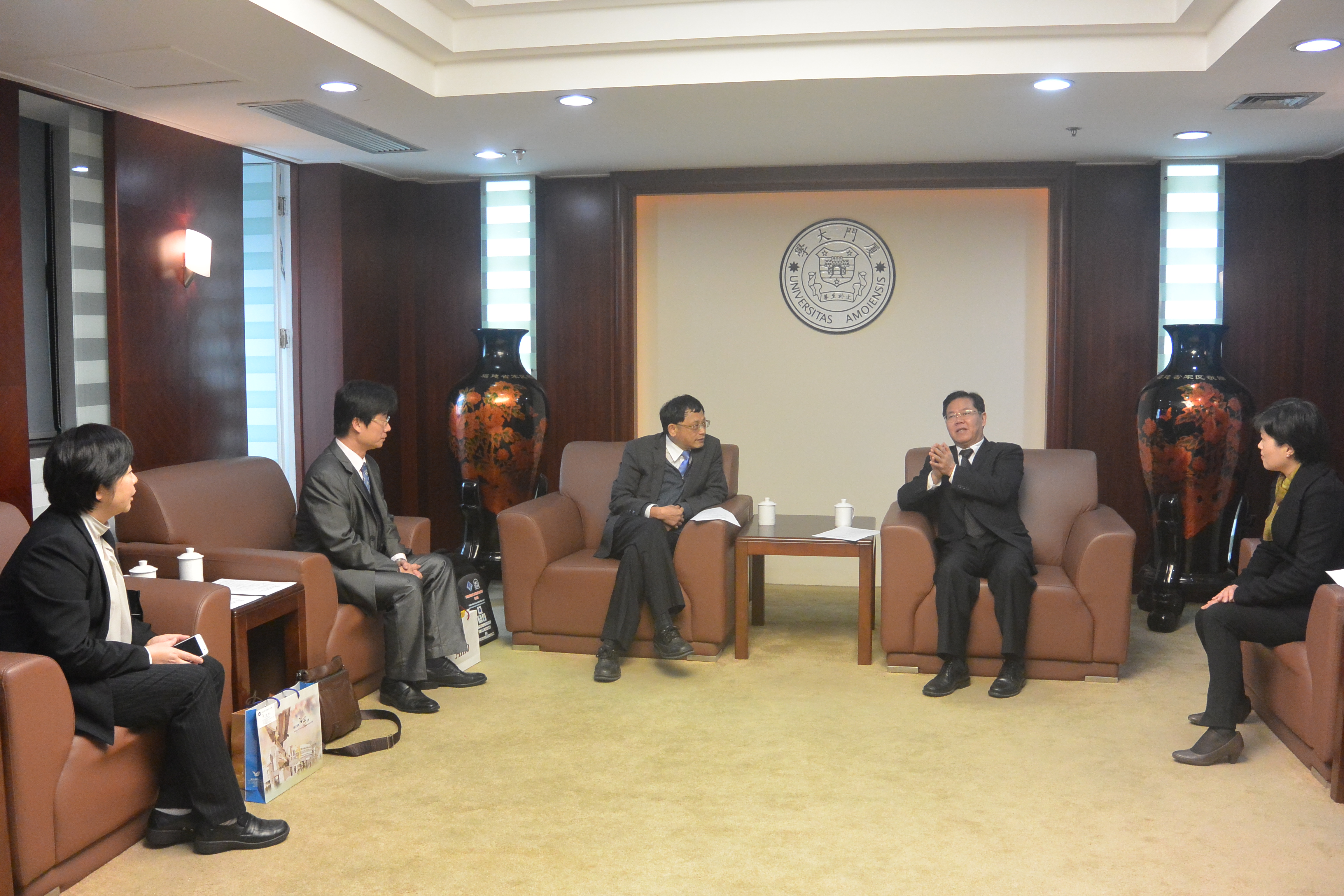 张清风校长对厦门大学赴海外开设分校这一创举表示钦佩和祝贺,并表示两校在海洋领域尤其是海洋化学、海洋生物的研究都是两岸最强的,未来可进一步加大交流力度,促成更多的合作成果。张校长还建议两校在海洋法方面开展交流合作,两校携手为南海问题的研究贡献力量。