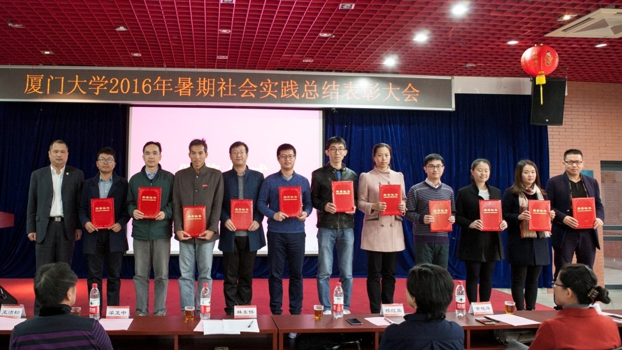 校团委书记陈怀锋从实施规模、组织过程和主要成效三个方面总结了今年暑期社会实践活动的整体情况,学生工作部副部长王洁松宣读《厦门大学2016年暑期社会实践表彰决定》。