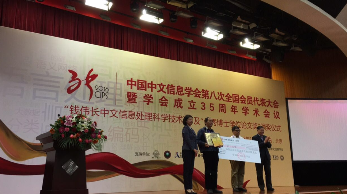12月23日,中国中文信息学会第八次全国会员代表大会暨学会成立35周年学术会议在北京隆重召开。会上,我校信息科学与技术学院史晓东教授团队研发的“多目标智能化简繁文本双向转换平台”获评“钱伟长中文信息处理科学技术奖”一等奖,史晓东教授和陈毅东副教授等团队成员到会接受表彰。