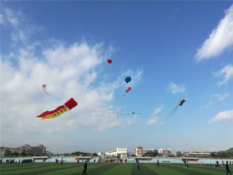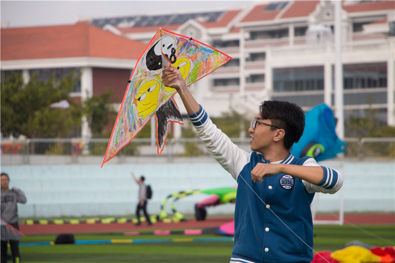 12月11日,厦门大学第四届风筝节在翔安校区一期田径场举行。上午8点开始,参赛者们陆续从展示区拿到自己手绘的风筝绑线试飞。开幕式后,各队伍准备就绪。由福州风筝协会带来的风筝特技表演华丽上线。较之去年,今年的大型风筝凸显了京谱、嫦娥等中国元素,别有一番韵味。对常人来说连拉线都困难的重量级风筝在他们手里上下翻舞,嫦娥奔月等情景演绎毫不费力,风筝似乎被注入灵魂,龙盘虎踞般霸占了整片天空。还有双线操控、形如滑翔机的运动风筝,在空中灵活翻转,呼呼作响。随后,表演者们成功放起了全省体积最大的风筝——一只长约30米、重约30斤的巨型“大章鱼”,现场的同学们惊呼连连。