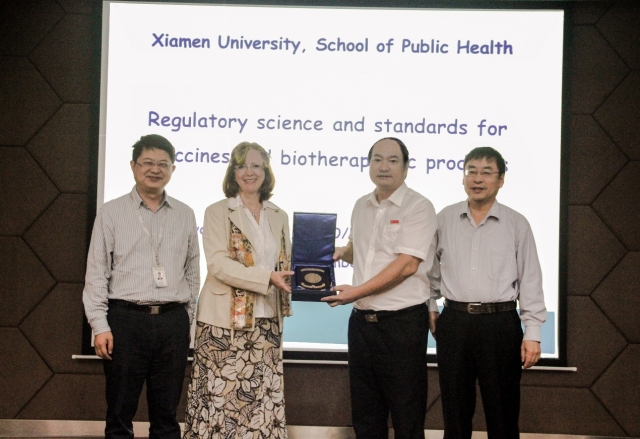 11月13日上午,世界卫生组织(WHO)Ivana Knezevic教授应公共卫生学院邀请在翔安校区为我校师生作了题为《Overview of WHO standards and their use in biologics and vaccine development》的南强学术讲座(第752讲)。讲座由公共卫生学院副院长赵勤俭教授主持,学院党委书记张琥向Ivana教授赠送南强学术讲座纪念牌。