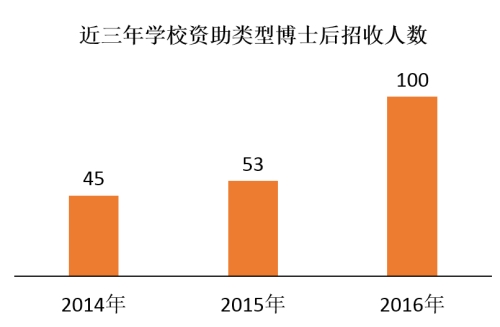 ——招收质量明显提高 通过面向全球统一发布博士后招收启事,在海内外相关媒体积极宣传,2016年新招收博士后中,海外博士学位获得者占24.6%,“985”高校博士学位获得者占66.7%。值得一提的是,新招收博士后中世界排名前100高校博士学位获得者有6人,实现了零的突破,其中3人获得博士后国际交流计划引进项目资助。