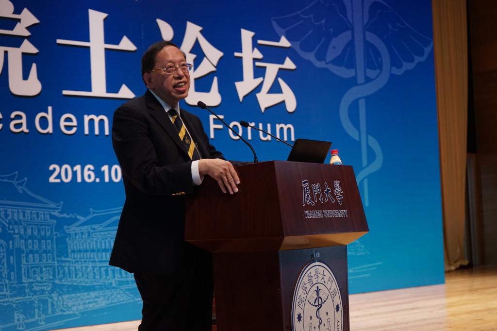 10月29日下午,医学院20周年院庆系列活动之院士论坛在思明校区科学艺术中心报告厅拉开帷幕。此次论坛邀请了中国科学院院士、上海交通大学副校长、医学院院长陈国强,中国工程院院士、医学院第二任院长张运和澳大利亚皇家医学院院士、新加坡医学院院士、医学院首任院长林延龄三位院士做主题报告,中国科学院院士、厦门大学副校长韩家淮教授致辞,中国科学院院士赵玉芬,校党委常委、医学院院长刘祖国教授等出席,全校800余名师生校友参与。本次论坛由医学院副院长胡天惠教授主持。