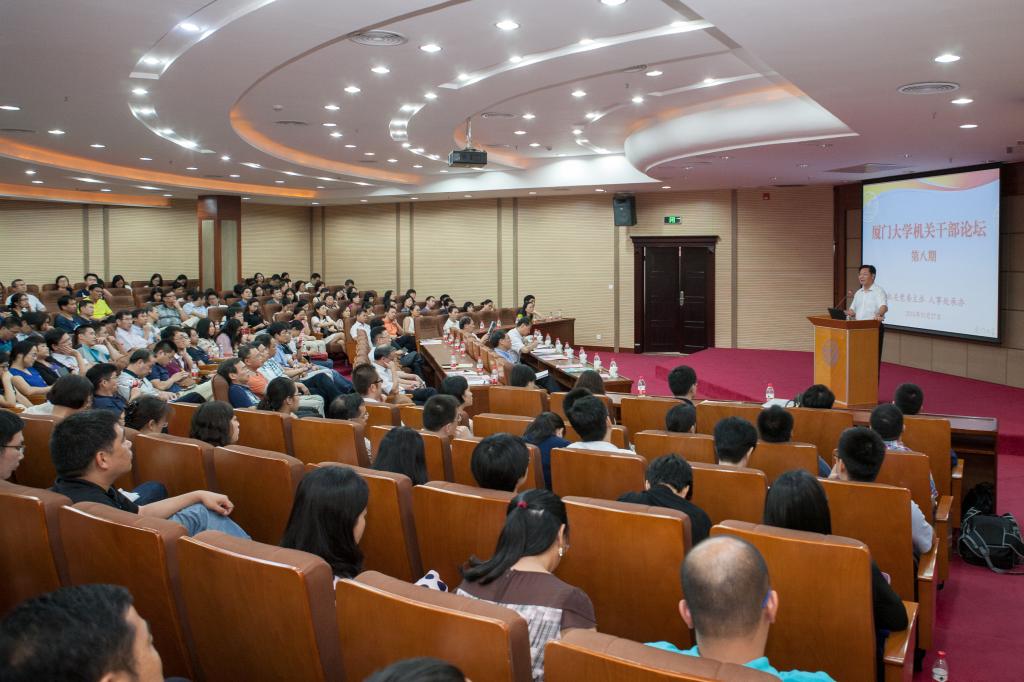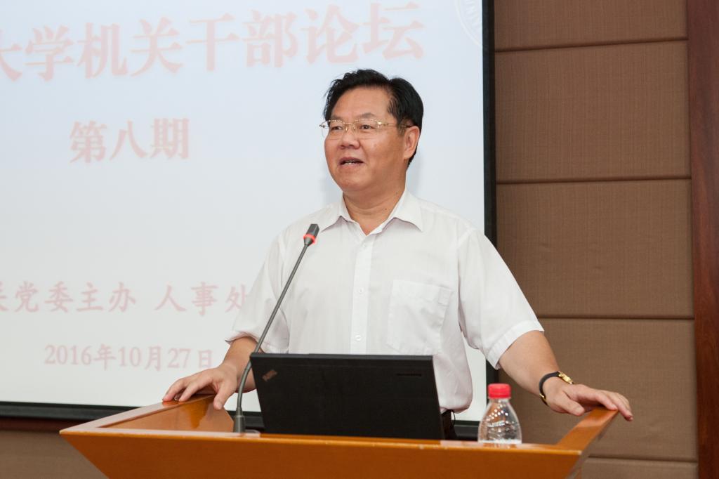 10月27日下午,第八期机关干部论坛:党政管理干部海外研修总结交流会在克立楼三楼报告厅举行。校长朱崇实出席并讲话。论坛由机关党委主办、人事处承办。人事处处长吴立武主持论坛。