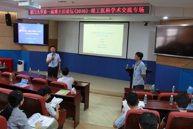 10月22日,由厦门大学人事处、厦门大学化学化工学院主办的“厦门大学博士后论坛(2016)——理工医科学术交流专场”在厦门大学思明校区卢嘉锡楼202报告厅举行。论坛旨在进一步提高博士后培养质量,更好地为博士后研究人员搭建学术交流平台,促进学科交叉和人才合作,就目前理工医科的研究热点和难点进行学术交流和讨论。来自化学化工学院、物理科学与技术学院、航空航天学院、医学院、药学院、公共卫生学院等不同学科的40余位博士后参加了本次论坛。