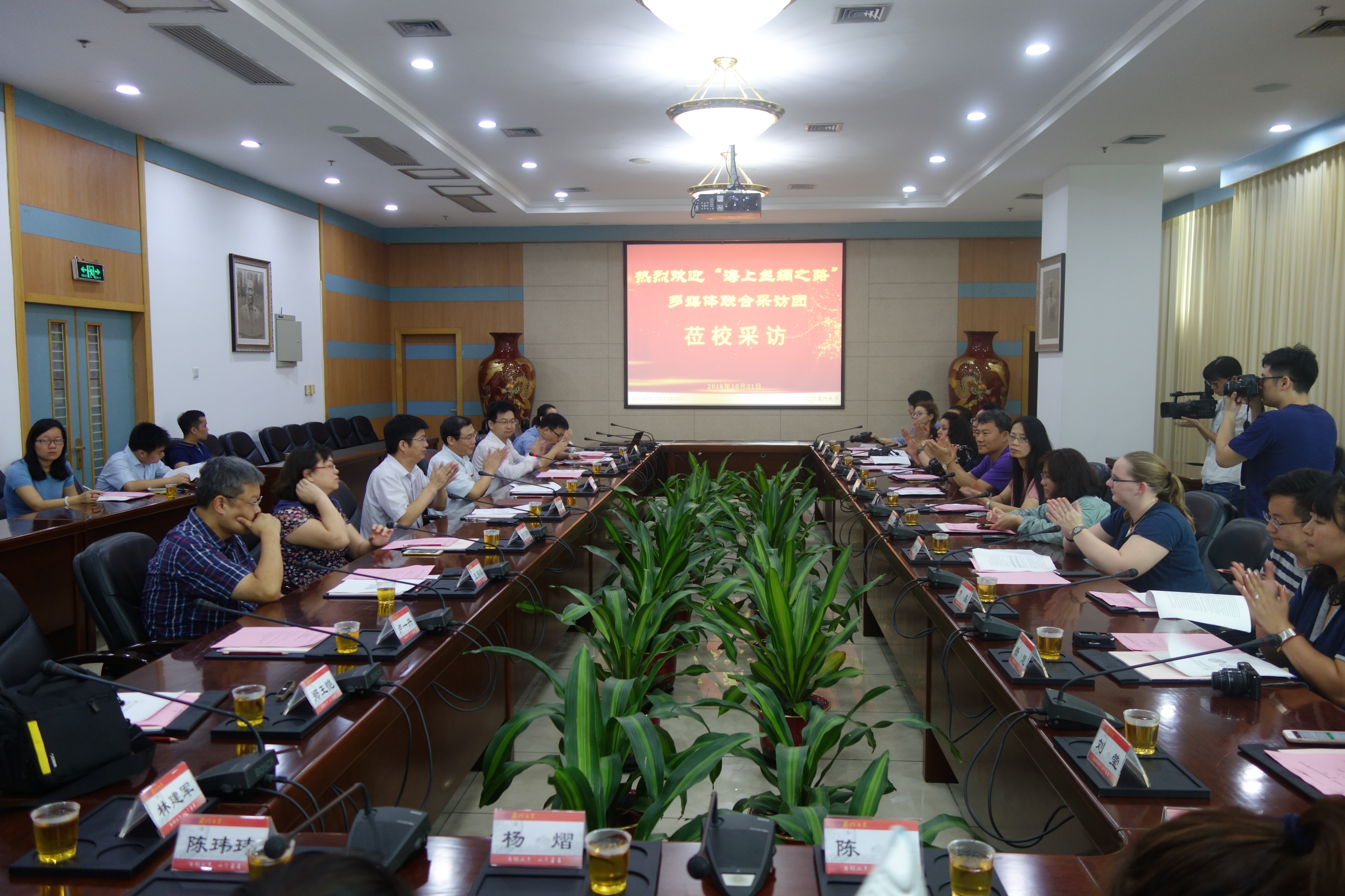 10月21日上午,“海上丝绸之路”多媒体联合采访团走进厦大,围绕“‘一带一路’特别是福建省21世纪海上丝绸之路核心区建设”这一主题在我校主楼215会议室进行了集中的深入采访。