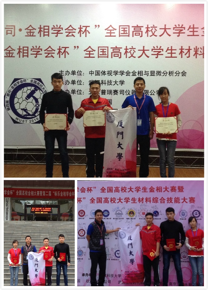10月14日-16日第四届“蔡司•金相学会杯”全国高校大学生金相大赛暨“标乐•金相学会杯”第二届全国高校大学生材料综合技能大赛在武汉科技大学举行,我校材料学院3名学子与来自80所高校的240名本科生同台竞技。经过激烈角逐,材料学院2013级本科生郝润姿获得综合技能大赛一等奖,2014级本科生赖泳爵、林木顺分别获得金相大赛二等奖和三等奖。本次参赛得到材料学院材料科学与工程实验教学中心(国家级专业实验教学示范中心建设单位)的大力支持,由姚荣迁副教授带队指导。