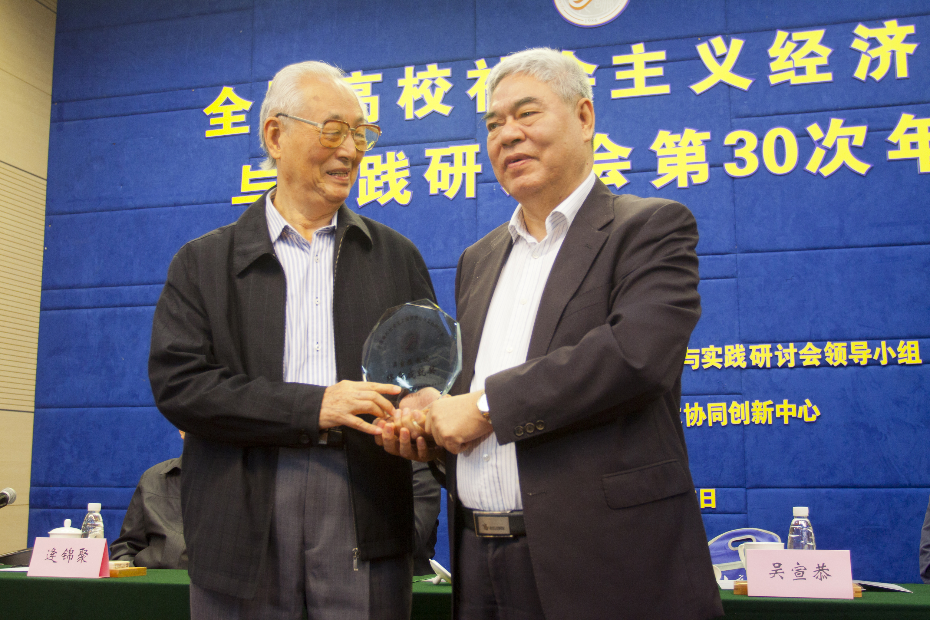 会上,全国高校社会主义经济理论与实践研讨会领导小组顾问、我校经济学院吴宣恭教授获得研讨会的终身成就奖,并在15日上午开幕式后做了题为《正确认识和处理国家所有制的集体性产权》的主题演讲。