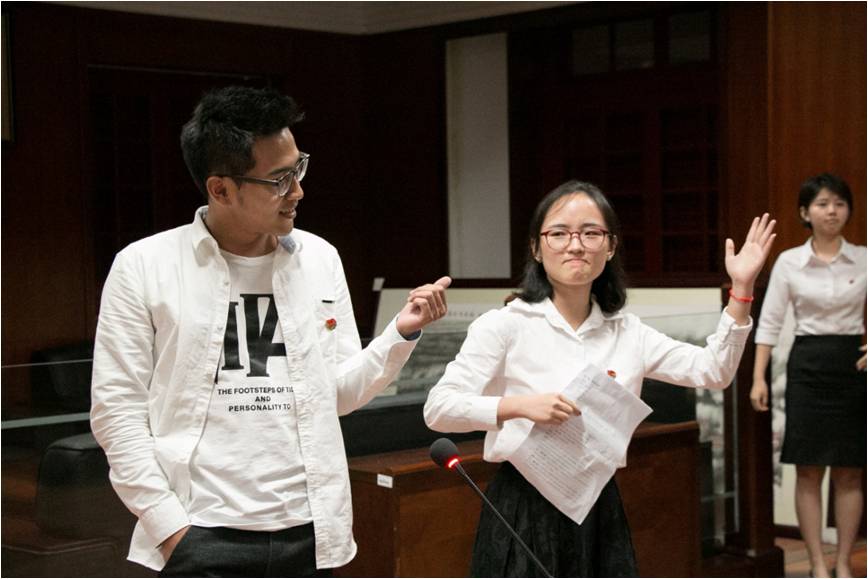 第三学习小组以情景剧的形式,结合毕业生党员的切身经历,展示了他们对学习习近平总书记关于“六有青年”重要讲话精神的理解和实践。毕业生党员通过情景剧演绎在求职过程中遇到问题和困难,但仍始终坚持理想和追求、敢于迎难而上的故事,展现了他们牢记习近平总书记的教导,真正做到内化于心、外化于行,始终保持积极的人生态度,历练荣辱不惊、不折不挠的心理素质,将崇高的品性、过硬的政治素养转化成做合格学生党员的思想自觉和行动自觉。
