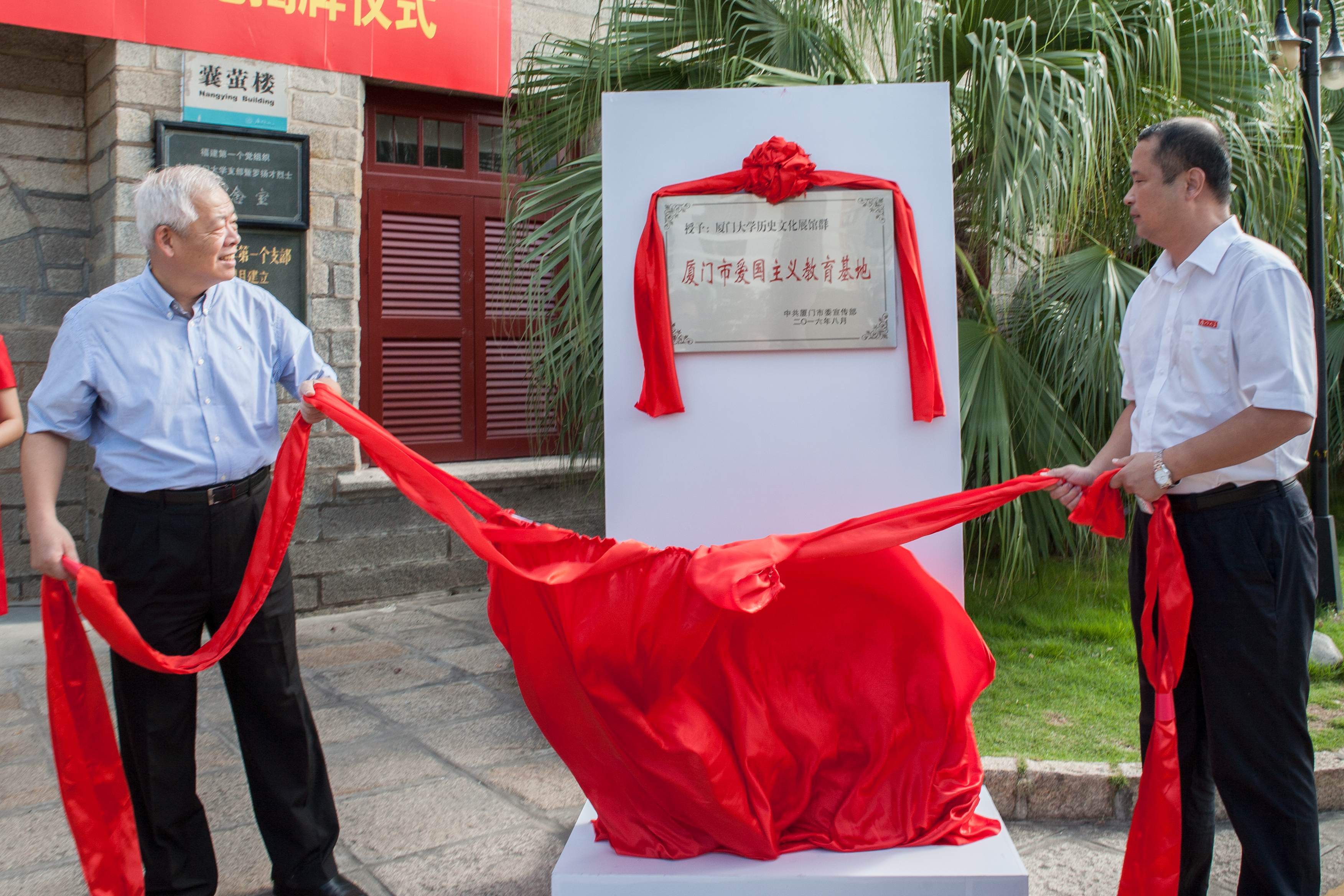 10月16日上午,厦门红色文化保护、传承和弘扬工程启动暨厦门大学历史文化展览馆群爱国主义教育基地揭牌仪式在我校囊萤楼前举行。厦门市委常委、宣传部部长叶重耕,我校党委副书记林东伟共同为基地揭牌。厦门市委宣传部副部长唐向阳,我校关工委主任陈力文,关工委顾问卞守耆出席仪式。校党委宣传部部长徐进功主持仪式。