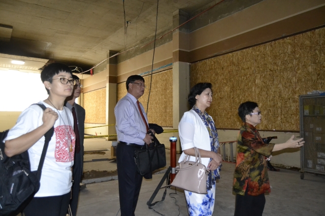 詹副校长一行实地考察了正在装修的“示范孔子学院”专用场地——多功能文化展示中心。圣大孔院管理院长刘丽容博士向厦大客人介绍了工程的设计、投标、审批和施工情况,展望了其教学、研讨、表演、展览等多种用途,并邀请詹副校长明年前来参加揭牌仪式。詹副校长盛赞了该中心的设计创意,表示今后将与圣大孔院分享厦大在书法、绘画、博物馆等方面的人才和资源,合作举办书画和文物展览。毛通文主任表示厦门大学汉语国际推广南方基地将给予大力支持。