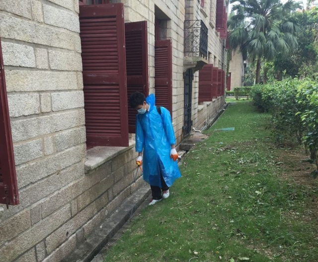 “莫兰蒂”走后,伴随而来的是环境卫生破坏、病媒生物孳生等可能。为预防灾后传染病的发生传播,保障师生身体健康,9月17日下午,公共卫生学院与后勤集团联合组织学生志愿者分别在思明校区和翔安校区进行校园消毒杀毒活动,数十名志愿者发挥专业知识与技能,为台风“莫拉蒂”后的校园重建工作贡献出自己的一份力量。