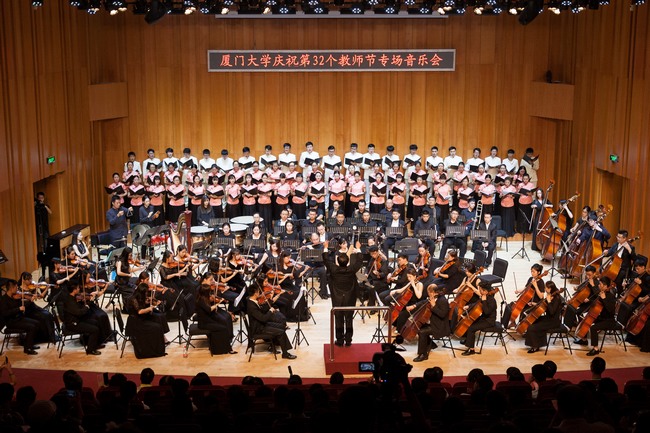 9月10日晚,厦门大学合唱团、交响乐团以及艺术学院师生给全校师生带来经典合唱交响史诗《长征组歌》,用歌声庆祝第32个教师节的到来。