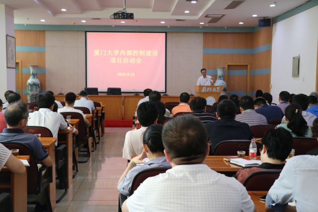 为深入贯彻财政部、教育部关于进一步提高行政事业单位内部管理水平、规范内部控制要求,推进厦门大学内部控制建设工作,9月12日下午,学校在颂恩楼220会议室召开了内部控制建设项目启动会。内部控制建设领导小组副组长叶世满副校长,内部控制建设领导小组成员、工作小组成员,各机关部处、直属单位正职领导,各学院(研究院)院长参加会议。会议由财务处处长廖青主持。