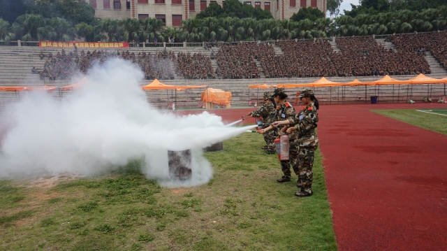 活动由保卫处主持。活动中,消防官兵先是向全体同学介绍了几起发生在高校的重大火灾事故,然后又向同学们细致的传授了不同情况下的火场逃生技巧。之后,消防官兵讲解并演示了使用灭火器、消火栓等消防设施的注意事项和具体方法。在互动环节,部分同学还在消防官兵的指导下,亲自手持灭火器进行灭火操作。活动尾声,保卫处老师对活动进行了总结并再次向全体新同学强调了重视消防安全的必要性。