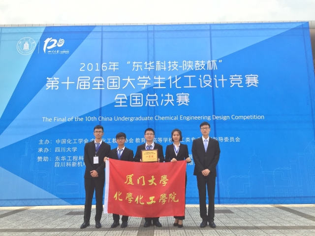 第十届“东华科技-陕鼓杯”全国大学生化工设计竞赛总决赛,于2016年8月19日-22日在四川大学举行。我校共有5支团队提交完整作品,经过激烈的竞争和层层的筛选后,我校化学化工学院化学工程与工艺专业2013级本科生兰洲、傅俊超、扶雅文、蔡吟天、陈琼同学组成的Re.action团队,进入了全国总决赛,经过现场展示和答辩荣获全国总决赛一等奖。其余的四支队伍分别获得全国二等奖、成功参赛奖的优异成绩。