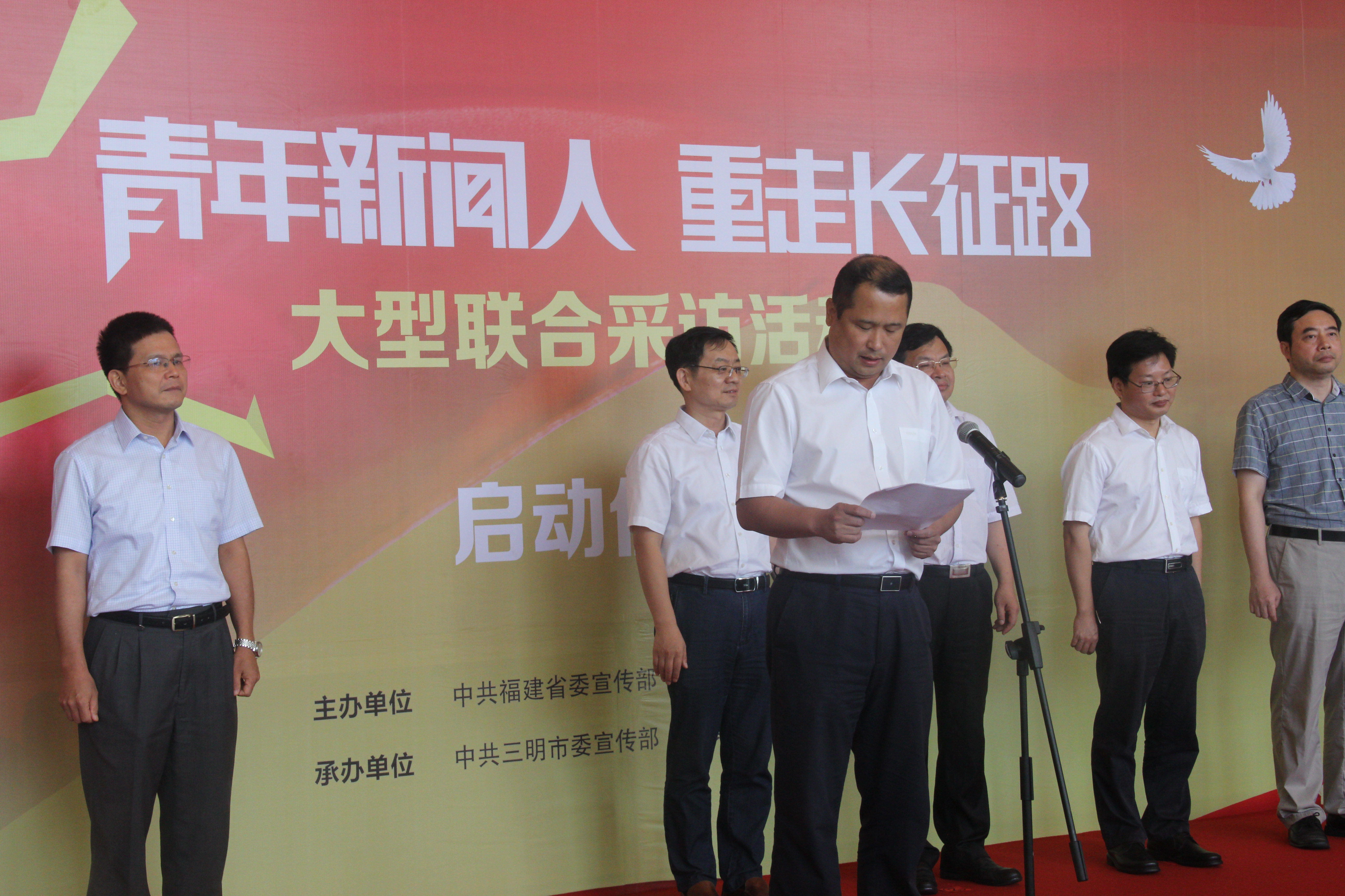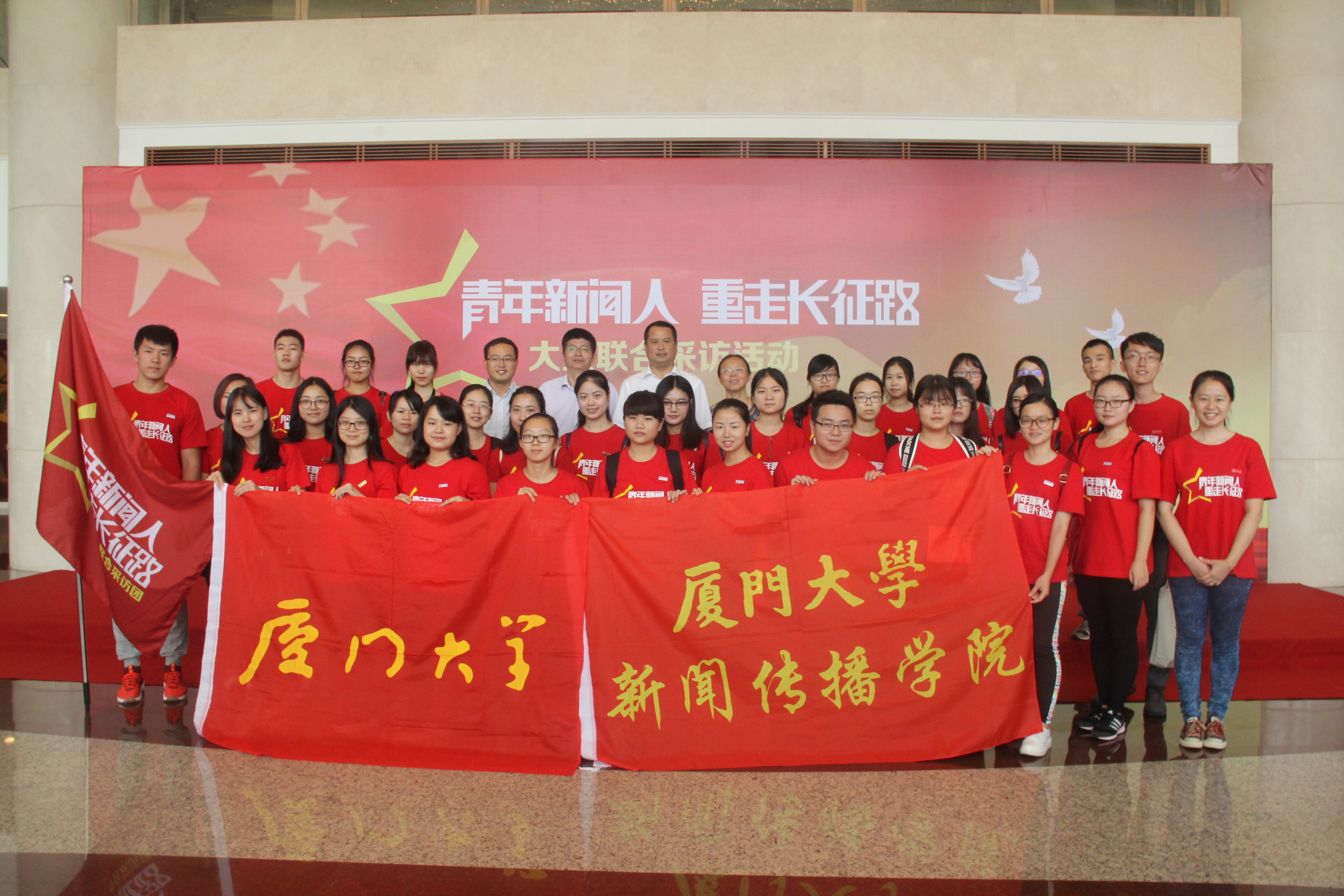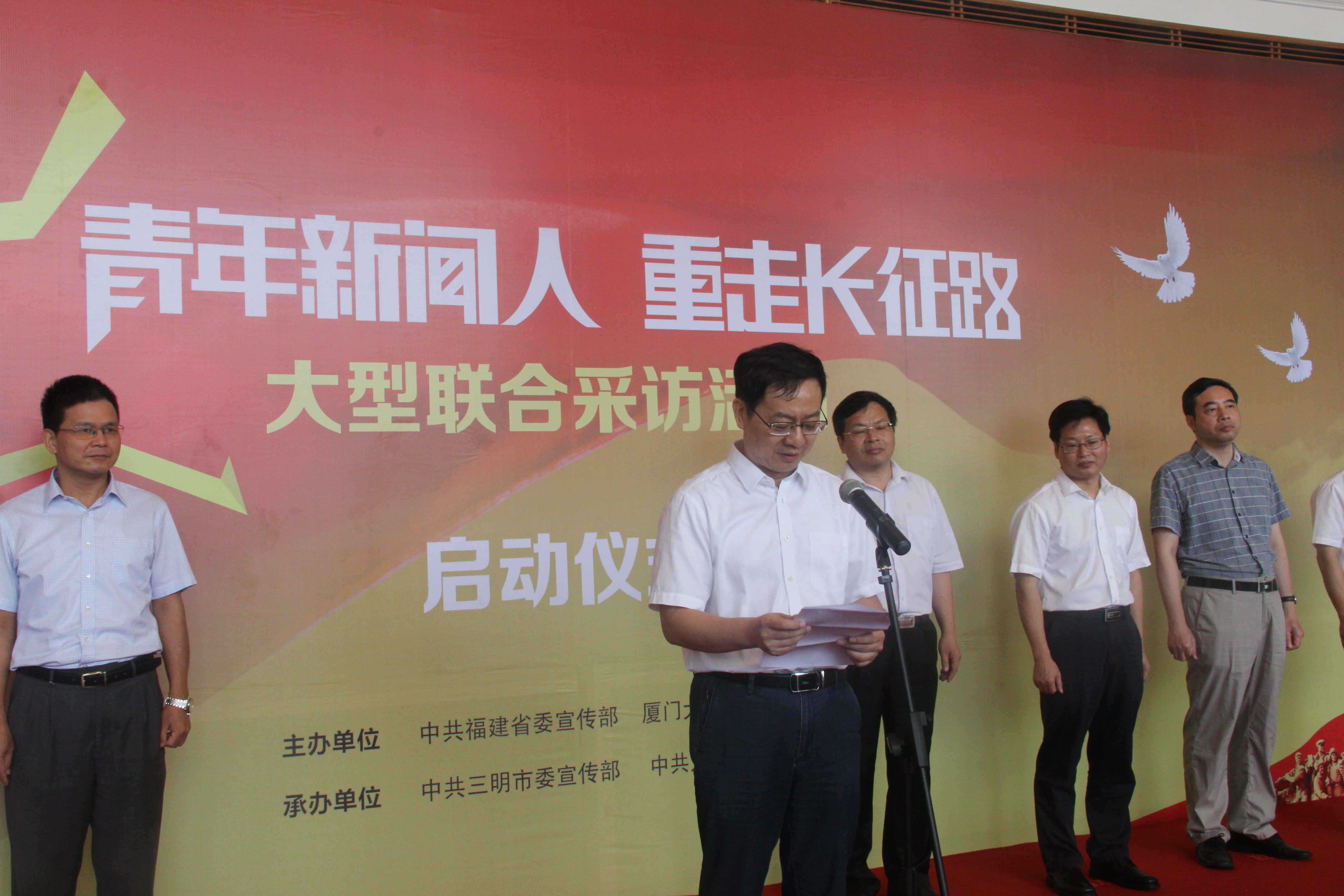 9月5日,由省委宣传部和厦门大学、福建师范大学联合主办的“青年新闻人 重走长征路”大型联合采访活动在福州举行出征仪式。