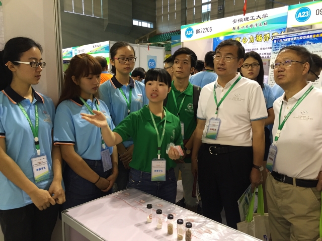 11日下午,各参赛队在体育馆展厅进行现场讲解展示。各大高校的参赛选手汇聚一堂,专家们一一点评参赛作品。期间,多位评委专家对“光转换醋酸纤维素农膜”抱以浓厚的兴趣,听完讲解又提问了很多相关的问题。活动期间,中国青年报的记者对参赛队员们进行了采访,队员们一致认为:参加此次大赛的收获,远不止于收获一枚奖牌。参赛经验的积累、知识面的扩展、科研精神的强化才是最重要的。