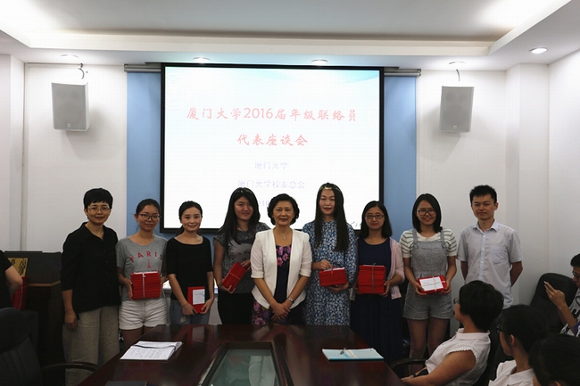 6月15日下午,我校在怀贤楼二楼校友总会会议室举行了2016届年级联络员代表座谈会。我校副校长、校友总会副理事长詹心丽,校友总会秘书处、学生工作处有关负责人以及2015届年级联络员代表出席了座谈会。会议由校友总会秘书处办公室主任周民钦主持,来自全校各院的33名2016届本、硕、博毕业生年级联络员代表参加会议。