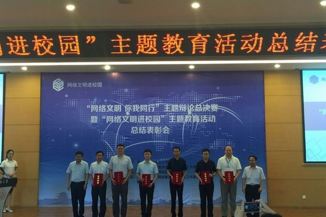 6月17日,由教育部思想政治工作司、国家互联网信息办公室网络社会工作局指导,全国高校校园网站联盟主办的“网络文明进校园”主题教育活动总结表彰会在重庆大学举行。我校荣获“百校千场网络文明主题校园巡礼”活动特等奖和最佳组织奖。中央网信办、国家网信办副主任任贤良出席会议并讲话,教育部、国家网信办、各高校负责同志参加会议。我校学生处处长夏侯建兵代表学校领奖。