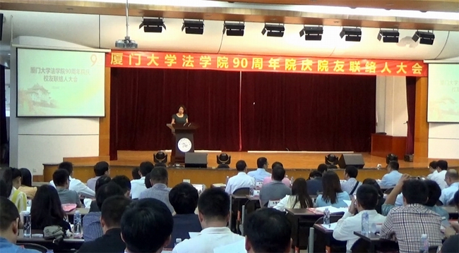 下午3时, 院友联络人大会在雄壮的校歌中拉开帷幕。法学院党委书记李智勇、院长宋方青、副院长朱炎生、李兰英,党委副书记周蕾、郭锦星出席此次大会。副院长何丽新主持大会。