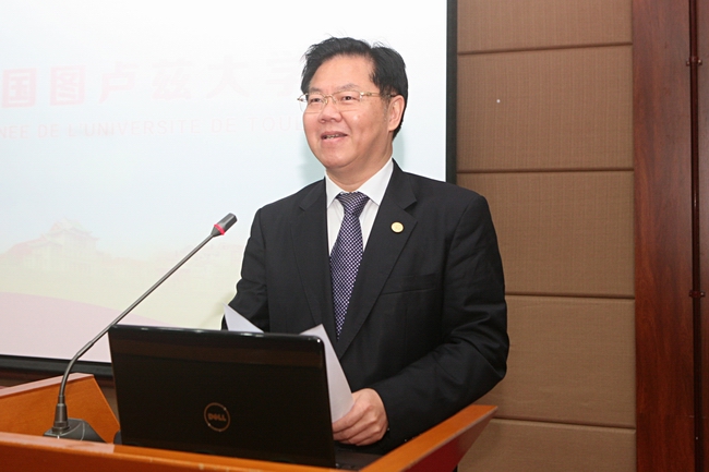 Jean-Pierre Vinel祝贺厦门大学建校95周年。他说,2012年,图卢兹大学为了推进学校国际化发展,在中国设立了第一个常设代表处。今天,学校大约有15000名学生来自世界各地,其中3000名来自中国。厦大是图卢兹大学在福建省的第一个合作伙伴,希望今后两校加强沟通联系,交流思想,在科学、工程、人文社会科学、医学等方面开展一系列深入有效的合作研究,共谱中法高校合作新篇章。