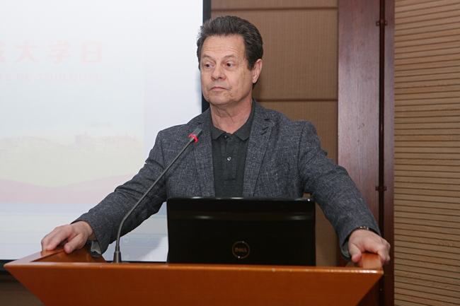 会上,图卢兹大学亚洲合作处处长 sovan leky、图卢兹大学驻中国代表王小康从学校的历史发展、地理位置、科研能力、学科设置、留学生交流项目等方面详细介绍了图卢兹大学的发展现状。