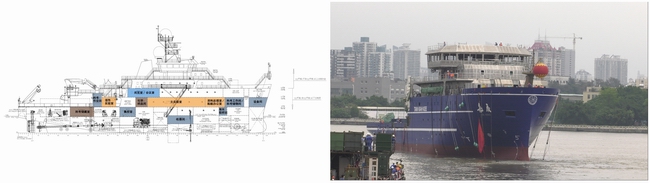 “造一艘什么样的船,怎么造这艘船?”这是摆在厦大海洋人面前的第一个问题。厦大过去没有这方面的经验,全国高校除了中国海洋大学也没有建造过类似吨位的船。经过反复调研论证,建造一艘3000吨级的现代化科考船的计划逐步明晰,并最终确定采用国外初步设计、国内转化详细设计的方式。国外设计公司先做整体的方案与合同设计,由厦大交给国内设计公司进行详细设计,这个阶段国外设计公司也一同审核。详设完成后,由厦大交给造船公司,而这时两家设计公司的技术责任仍未“脱钩”。在这个设计责任的交互演替中,将最初的设计理念一贯而终。作为船东的厦大,逐渐摸索出一套独一无二的项目合作与工程实施模式。