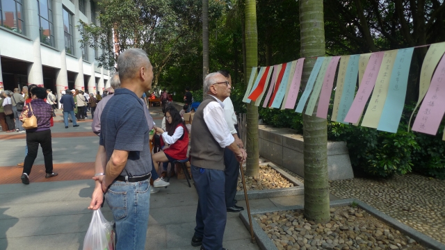 一大早,芙蓉湖畔就来了不少老同志。他们趁此机会见到久违的老友,叙旧交流,忆往昔,谈近况,人声鼎沸,热闹非凡。活动一开始,大家就兴致勃勃地选好自己感兴趣的活动项目尝试,有身手矫健的老爷爷一早就等在篮筐前,举着小篮球准备一展身手;还有兰心蕙质的老奶奶在悬挂着的谜语下悠闲漫步,胸有成竹;在射箭、飞镖和套圈游戏区,老同志们驾轻就熟地展示他们的准头和技术。参加完各项活动,大家还意犹未尽,拉着老友们活动筋骨、舒展身体,赏校园美景,自得其乐,现场一片欢声笑语。