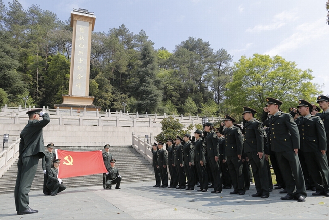 长汀,一个点燃闽西革命之火的地方,一块经过血与火洗礼的红色土地,瞿秋白、杨成武、何叔衡……无数革命先辈们在这里浴血奋战,洒下一片赤诚之心。现在,厦门大学国防生来到瞿秋白纪念碑前,敬献花圈,全体人员行三鞠躬,肃穆哀默,悼念为革命献出生命的先烈们,以寄哀思。随后,一行人面向鲜红的党旗,坚定地举起右拳,重温入党誓词,表达对革命先辈的缅怀之情。仰望这厚重的大理石碑,镌刻着革命先烈的名字,任八十多年风雨,不曾磨灭;看那庄严的祭奠祠堂,诉说着不屈不挠的革命精神,凭时代更迭,不曾褪色。